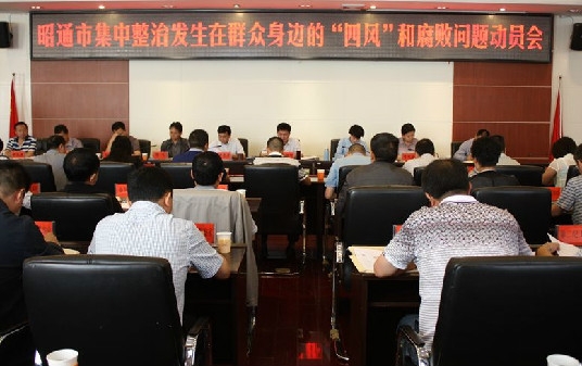 昭通市委常委、市紀委書記陸維智同志出席會議并作動員講話,市紀委副書記、市監(jiān)察局局長、市預防腐敗局局長田榮屏同志主持會議,市紀委副書記夏瓊同志部署集中查處百日專項行動,市紀委副書記賀飛同志宣讀成立集中整治發(fā)生群眾身邊的“四風”和腐敗問題的通知。