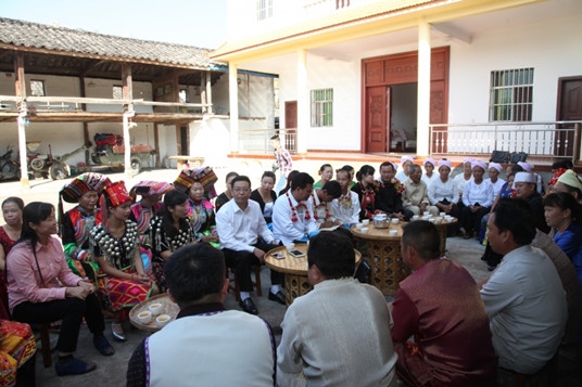 “父老鄉親們,今天很高興來到傣族村寨,與大家一起學習黨的十八屆五中全會精神。”何祖坤率先打開話匣子,今年的10月26日至29日在北京召開黨的十八屆五中全會是在協調推進“四個全面”戰略布局、奪取全面建成小康社會決勝階段召開的一次十分重要的會議,用我們通俗的話來說,就是昨天的總結、今天的指導、明天的指引。特別是會議提出“創新、協調、綠色、開放、共享”的發展理念,非常振奮人心,德宏在生態環境、沿邊開放、民族團結等方面具有獨具特色的優勢,相信在“十三五”規劃和“五大理念”的指引下,在大家的齊心努力下,一定會大有可為、大有作為。簡短的一席話,一下拉近了距離,大家你一言我一語地談起了黨的十八屆五中全會精神。