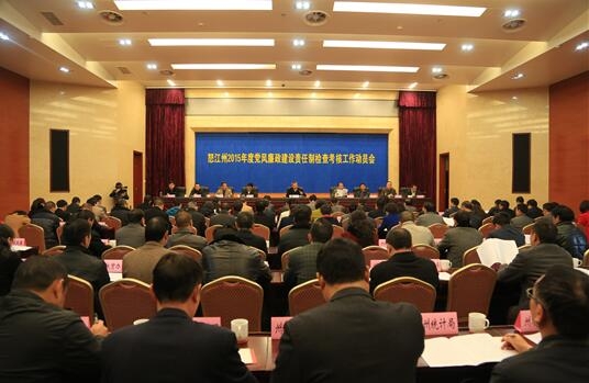 1月11日上午,怒江州2015年度黨風(fēng)廉政建設(shè)責(zé)任制檢查考核工作動(dòng)員會(huì)召開(kāi)。