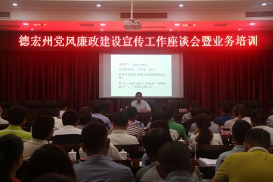 “先動員培訓,后座談部署,這樣全新的宣傳工作業務培訓暨座談在德宏州尚屬首次。”針對縣鄉紀委換屆,一大批新進紀檢監察系統的縣、鄉宣傳干部工作不清、業務不熟的實際,5月17日,德宏州舉行黨風廉政建設宣傳工作業務培訓暨座談會,對全州160多名州、縣、鄉紀檢監察宣傳干部進行業務培訓,并傳達全省黨風廉政建設宣傳工作座談會暨業務培訓精神,總結部署全州宣傳工作。