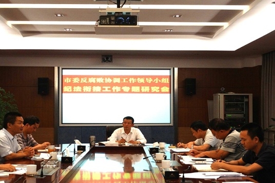 7月14日,普洱市委反腐敗協調小組召開紀法銜接工作專題會議,就進一步抓好《云南省貫徹落實<關于在查辦黨員和國家工作人員涉嫌違紀違法犯罪案件中加強協作配合的意見>實施細則》的貫徹落實作了研究部署,對紀法銜接中存在的一些問題作了進一步研究。