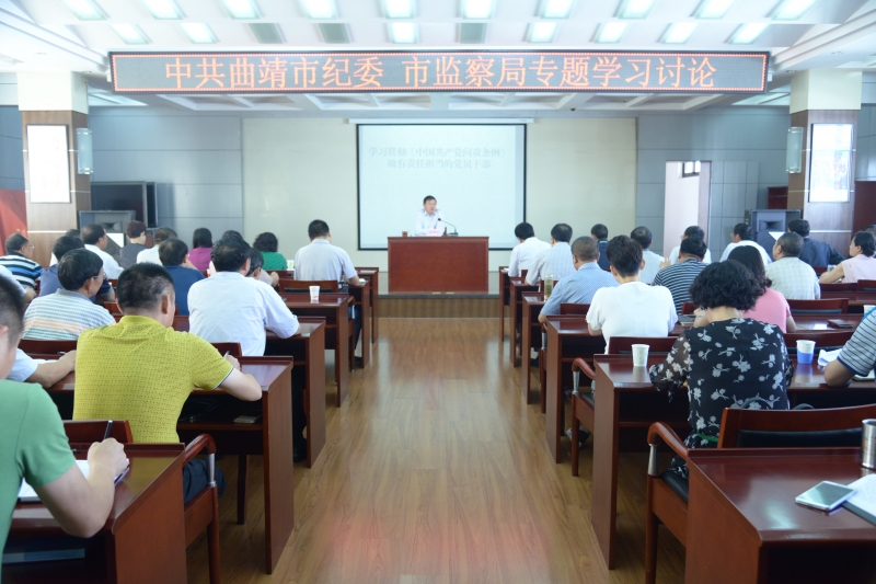 7月25日上午,曲靖市紀委監察局機關“雙周學習”照常進行。這是曲靖市委常委、市紀委書記以“學習貫徹問責條例,做有擔當的紀檢干部”為題,為委局機關全體黨員干部上專題黨課。《問責條例》制定的目的、依據、指導思想和問責原則、問責主體、問責對象、責任劃分、問責情形、問責方式、問責程序娓娓道來,結合案例講實際運用深入淺出,淺顯易懂。