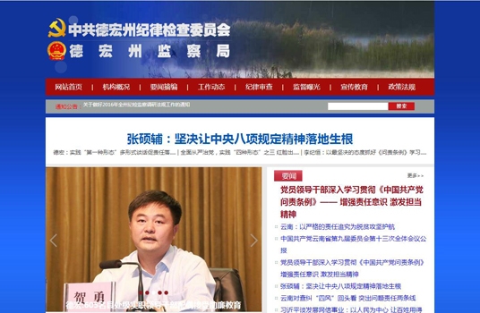 兩次改版網站,聚焦主業主責。聚焦監督執紀問責主業,分別于2015年5月、2016年3月兩次對“德宏州紀委州監察局網站”進行改版升級,傳遞反腐最強音,傳播倡廉正能量,傾力打造了權威發布平臺、宣傳教育平臺、工作展示平臺、互動交流平臺、網絡監督平臺和紀檢監察業務數據庫,切實提高黨風廉政新聞宣傳輿論的傳播力、引導力、影響力和公信力,為黨風廉政建設和反腐敗工作提供強大輿論支持。