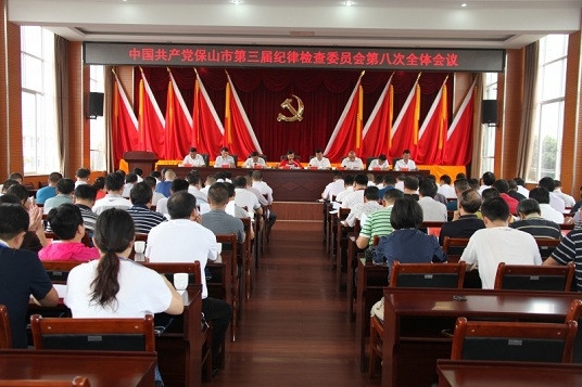 中國共產(chǎn)黨保山市第三屆紀(jì)律檢查委員會(huì)第八次全體會(huì)議于8月5日在隆陽舉行。全會(huì)全面貫徹落實(shí)黨的十八大和十八屆三中、四中、五中全會(huì)精神,深入貫徹習(xí)近平總書記系列重要講話精神,認(rèn)真總結(jié)五年來全市黨風(fēng)廉政建設(shè)和反腐敗工作,研究部署今后五年的主要任務(wù),審議市紀(jì)委提請(qǐng)市第四次黨代會(huì)審查的工作報(bào)告。