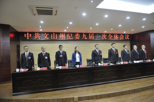 受中共文山壯族苗族自治州第九次代表大會主席團委托,張杰同志主持會議。受中共文山壯族苗族自治州第九次代表大會主席團委托,楊潤同志向全體會議宣讀了省委、省紀委關于中共文山州第九屆紀委常委、書記、副書記候選人預備人選名單的批復。