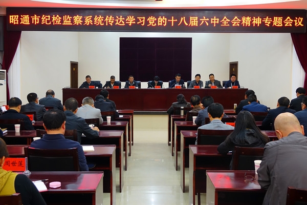 10月28日,昭通全市紀檢監察系統召開專題會議傳達學習黨的十八屆六中全會精神。