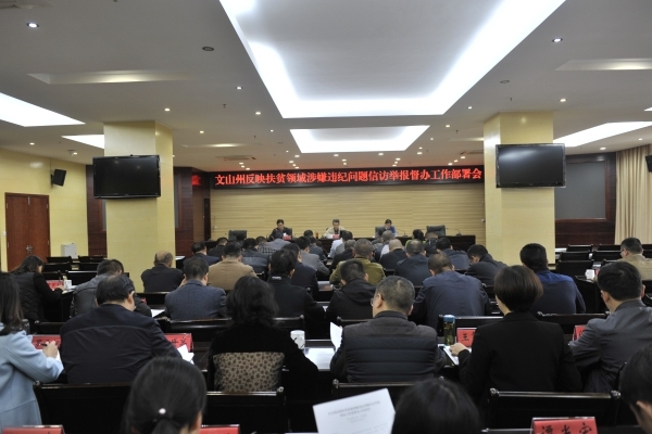 11月2日下午,文山州反映扶貧領域涉嫌違紀問題信訪舉報督辦工作部署會召開,傳達學習和貫徹落實中央紀委、省紀委部署會議精神,安排全州反映扶貧領域涉嫌違紀問題信訪舉報工作,推動各級紀檢監察機關聚焦中心,突出重點,精準執紀,堅決整治扶貧領域違紀違規問題,為打贏脫貧攻堅戰提供堅強的紀律保障。