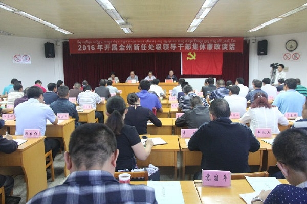 近日,西雙版納召開新任處級干部集體廉政談話會,對77名全州新任處級干部集中進行廉政教育。會議通報了近年來全州職務犯罪案件查辦情況,組織新任領導干部現場簽訂廉政承諾書,并進行廉潔從政宣誓。