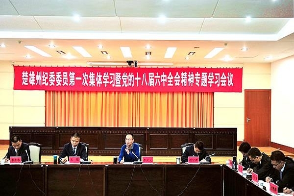 近日,楚雄州紀委召開會議,專題研究全州紀檢監察系統學習貫徹十八屆六中全會精神相關工作。會議強調,紀檢監察系統學習貫徹十八屆六中全會精神,要自覺學、系統學、認真學,努力做到學而思、學而信、學而行。