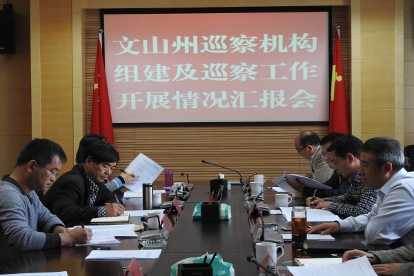 州委常委、州紀委書記匯報文山州巡察機構組建及巡察工作開展情況。中共文山州委巡察工作領導小組成員、州巡視聯絡辦全體人員、2016年州紀委巡察組組長、副組長出席會議。