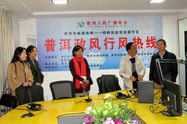 近日,普洱人民廣播電臺《普洱政風行風熱線》節目在開播十周年之時,普洱市委常委、市紀委書記帶領相關同志到普洱人民廣播電臺調研,察看《普洱政風行風熱線》節目運行情況,了解節目播出十年來產生的實際效果。并就進一步改進方法方式,提高節目質量,辦好《普洱政風行風熱線》節目,強化新聞輿論監督,突出社會效果等相關問題,與普洱市委宣傳部、市廣播電視局、普洱人民廣播電臺、普洱日報社等單位的領導進行商討。
