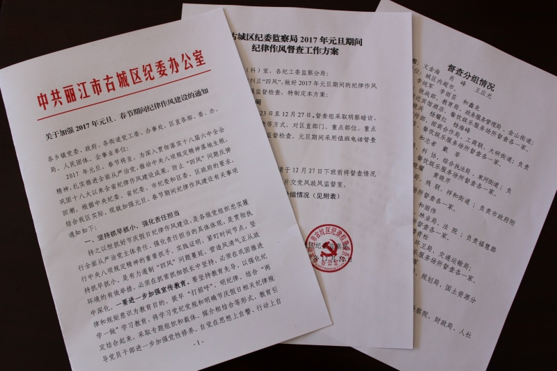 古城區紀委下發《關于加強2017年元旦、春節期間紀律作風建設的通知》,要求廣大黨員干部深入貫徹落實中央“八項規定”精神,嚴格執行黨規黨紀,切實做到“十嚴禁”,堅決杜絕“節日腐敗”。全區各級紀檢監察機關要運用監督執紀“四種形態”,加大節日期間違紀違規行為的查處力度,對頂風違紀違規行為,發現一起查處一起,嚴查快處。堅持“一案雙查”,嚴肅追究直接責任人責任的同時,還要嚴肅追究有關領導干部的責任。對典型問題,要點名道姓通報曝光。