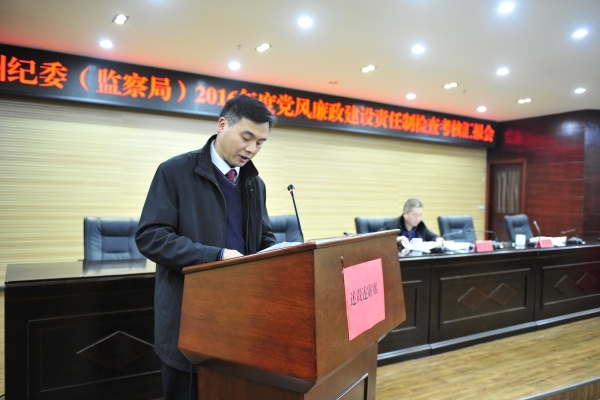 “本人始終牢記黨要管黨、從嚴治黨的責任,認真履行全面從嚴治黨主體責任,堅持把黨風廉政建設工作同分管工作同研究、同布置、同檢查、同落實;我始終堅持‘三嚴三實’和忠誠干凈擔當要求,認真履行主業主責,種好‘責任田’,做到落實主體責任不含糊,履行監督責任不走樣;我牢固樹立‘抓好黨風廉政建設是本職,不抓黨風廉政建設是失職,抓不好黨風廉政建設是不稱職’的理念”……近日,文山州紀委監察局舉行2016年度黨風廉政責任制考核匯報會,州委第十二檢查考核組參加會議并就述責述廉和民主測評提出相關要求,會議首先對2016年度州紀委監察局黨風廉政建設責任制工作情況作了匯報,州紀委、州監察局9名領導班子成員進行述責述廉。州紀委州監察局機關、各派出紀工委共70人參加會議。