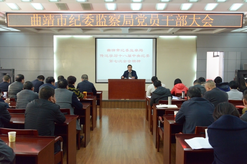 1月9日上午,曲靖市紀委監察局召開黨員干部大會,傳達學習十八屆中央紀委七次全會精神。