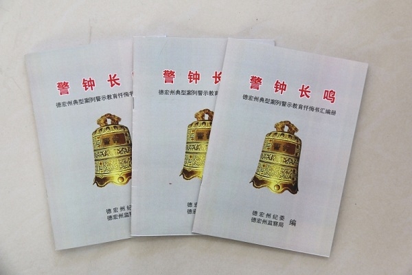 德宏州紀委編輯了《德宏州典型案例警示教育懺悔書匯編冊》在全州開展黨員干部警示教育活動。《懺悔錄》選取了近年來查辦的15名典型違紀違法黨員干部的“懺悔書”,真實反映了違紀黨員領導干部的懺悔,深刻剖析了其走向腐敗的心路歷程和軌跡,引人深思,發人深省。