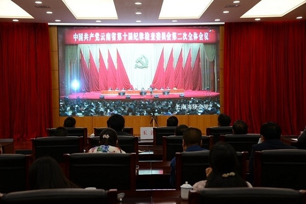 1月13日,中國共產黨云南省第十屆紀律檢查委員會第二次全體會議在昆明召開,玉溪市領導干部在市、縣區分會場收聽收看。