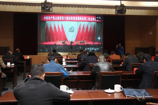 1月13日,中國共產黨云南省第十屆紀律檢查委員會第二次全體會議在昆明召開。保山市、縣兩級設置了分會場,市、縣(區)委、政府、人大、政協領導班子成員,市、縣(區)法院院長、檢察院檢察長,保山高校黨委書記,紀檢監察干部在分會場參加了視頻會議。