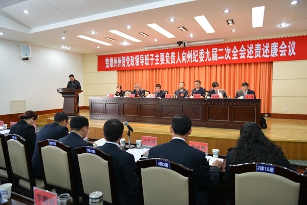 3月3日下午,楚雄州紀委九屆二次全會舉行述責述廉會議。會上,20名縣市和州屬部門黨政領導班子主要負責人,向全會報告履行黨風廉政建設主體責任和個人廉潔從政等情況并接受評議。