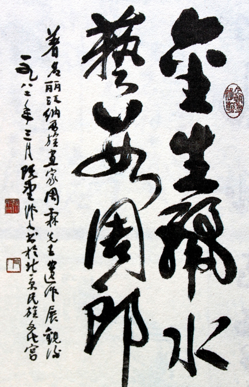 石鼓聲聞到鳳城,龍?zhí)讹L(fēng)物活生生。山泉引自源頭處,天外飛來有鹡鴗。一九六三年郭沫若先生看周霖北京畫展后題贈