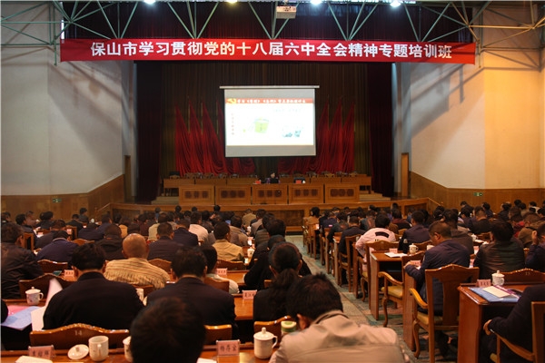 為深入學(xué)習(xí)貫徹黨的十八屆六中全會精神,學(xué)習(xí)貫徹省第十次黨代會精神,3月29日至4月12日,保山市委將舉辦三期學(xué)習(xí)貫徹十八屆六中全會精神專題培訓(xùn)班。3月29日,第一期培訓(xùn)班開班,保山市委書記出席開班動員會并為培訓(xùn)班作專題輔導(dǎo)報告。