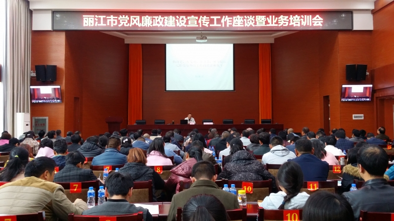 4月18日,麗江市召開全市黨風廉政建設宣傳工作座談暨業務培訓會。會議深入學習貫徹全省黨風廉政建設宣傳工作暨業務培訓班精神,總結去年工作,部署推進今年黨風廉政建設宣傳各項任務。市紀委監察局全體干部及市直部門紀委(紀檢組)、5個縣區紀委分管宣傳工作的領導、縣區及鄉鎮紀委通訊員、信息員近200人參加座談培訓。