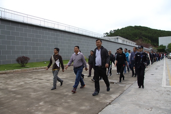 全體學(xué)員在獄警的帶領(lǐng)下步入監(jiān)區(qū)參觀