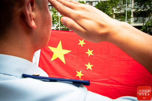 重慶市南川區消防救援支隊在國慶來臨之際組織開展“我與國旗合個影”活動,體現矢志不渝做黨和人民忠誠衛士的決心和意志。圖為消防指戰員向國旗敬禮,表達自己對祖國的無限忠誠與熱愛。(重慶市南川區紀委監委供 尹鵬程 攝)