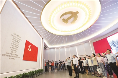 圖為黨員在上海中共一大紀念館里重溫入黨誓詞。新華社記者 劉穎 攝