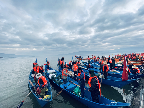在彩云之南的江川,第十七屆開漁節宛如一場盛大的狂歡,百船競發,星云湖畔氣勢如虹;百舸爭流,漁家盛宴場面震撼。(陳然 攝)